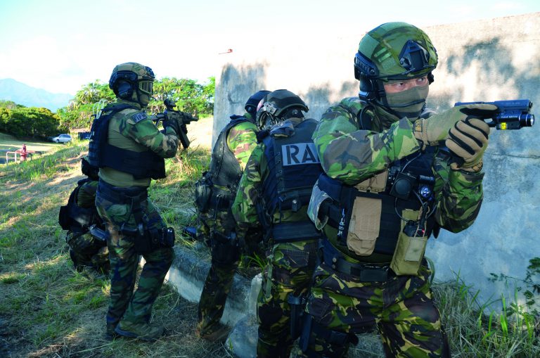 La Nouvelle-Calédonie n’a pas de service régional de police judiciaire (SRPJ), seulement une section de recherche de la gendarmerie qui peut bénéficier d’une assistance de l’antenne, tout comme la Direction nationale du renseignement et des enquêtes douanières (DNRED) et la DGSI. Avantage de l’antenne RAID : la plupart de ses opérateurs sont des Mélanésiens, et se fondent donc complètement dans la population locale. Ce sont aussi de ⇐ beaux gabarits : la moyenne est à 90-100 kg, de sorte qu’il a fallu adapter la taille des douches… Et ils ont une parfaite connaissance des quartiers difficiles et de la brousse, qui commence très tôt, dès la sortie de Nouméa. L’appellation « brousse » concernant, en fait, la zone qui commence à La Tontouta, jusqu’au nord de l’île.
