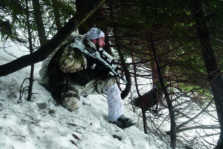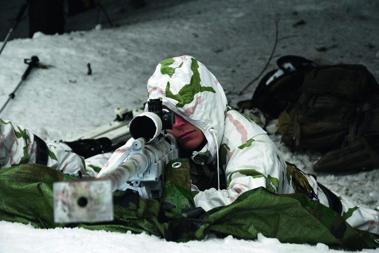 Les chasseurs alpins interviennent principalement en milieux montagneux et dans des zones difficiles d’accès. Le franchissement d’obstacles naturels est leur spécialité. Les conditions extrêmes hivernales obligent souvent ces combattants à mettre en œuvre des techniques de progression, d’insertion et de camouflage spécifiques pour s’infiltrer discrètement et atteindre leur objectif. Dans ce domaine, les tireurs d’élite des sections TELD de troupes de montagne excellent. Ils sont formés pour se déplacer à ski durant des heures et pour traverser des passages escarpés et enneigés. Tout au long de leur mission, les TE doivent faire preuve de discrétion et d’autonomie. Ils évoluent parfois à découvert, en forêt et sur des flancs de montagne à fort devers. Ils doivent faire attention aux traces laissées par leurs skis, pour ne pas être repérés, savoir se déplacer de nuit avec leurs JVN dans un milieu enneigé, prendre en compte les aléas de la météo, et être capables de s’orienter sans GPS avec une visibilité dégradée dans des zones où il est impossible à des véhicules de soutien d’intervenir. La maîtrise des techniques d’insertion et de camouflage prend ici tout son sens. Pour se fondre dans le paysage, chaque membre de l’équipe autonome porte sur lui une ghillie, des vêtements adaptés au froid, et de quoi tenir plusieurs heures à poste pour observer un objectif et fournir des informations à l’échelon supérieur.