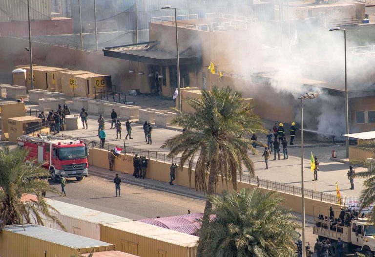 Les forces de sécurité irakiennes qui quadrillaient, jusqu’alors, la « Zone verte 1 » n’opposent qu’une timide résistance face aux centaines de partisans qui ont envahi le quartier. Ces derniers manifestent contre des frappes américaines qui ont visé deux jours plus tôt des combattants pro-iraniens et tué 25 d’entre eux, dans l’Ouest irakien. Les groupuscules présents au cœur de la « Green Zone » sont principalement constitués de partisans du Hachd al-Chaabi. Cette milice chiite hétéroclite, sous-influence iranienne, est essentiellement composée d’Irakiens qui ont combattu Daech au cours des derniers mois.