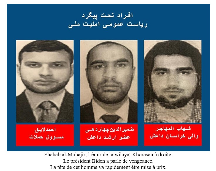 La « wilayat Khorasan » de Daech active dans le pays a effectivement saisi l’occasion le 26 août en déclenchant des opérations suicide complexes visant l’entrée « Abbey» et l’hôtel Baron tout proche servant de point de regroupement pour les Américains. Le nombre réel de victimes ne sera peut-être jamais connu étant donnés l’effondrement de l’administration afghane et plus particulièrement celle de la santé. Il est question de 90 tués et 140 blessés. Par contre Washington a annoncé la mort de 13 de ses militaires.