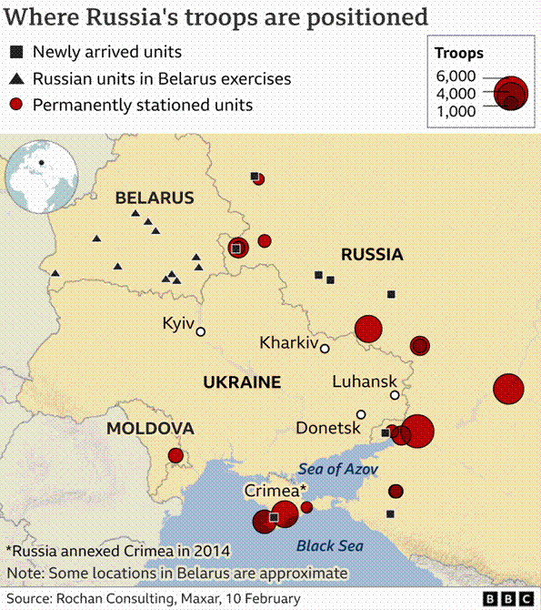 Le 10 février, le président Joe Biden a appelé tous les citoyens américains étant en Ukraine à quitter le pays par les moyens de transports commerciaux car, en cas d’offensive russe, aucun soldat américain ne sera dépêché sur place – comme cela avait été le cas en Afghanistan – pour les évacuer. Il tient à éviter le déclenchement d’une guerre contre la Russie (mais prend des précautions, au moins trois bombardiers B-52 ayant été envoyés en renfort à Fairford en Grande Bretagne ces derniers jours et quatre chasseurs F-22 Raptor ayant rejoint la base aérienne de Powidz en Pologne où devraient aussi arriver les 3.000 parachutistes de la 82è Airborne qui avaient été mis en alerte fin janvier).