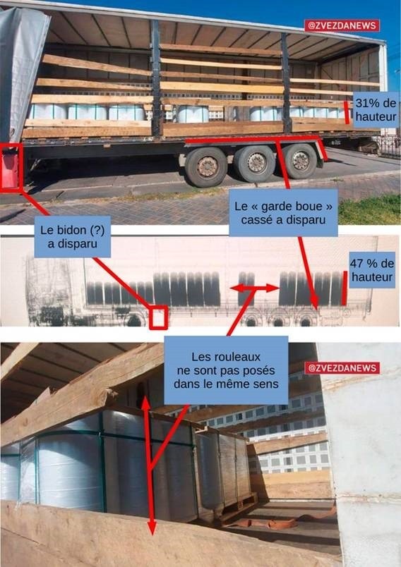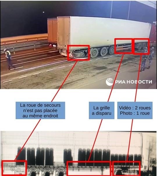 Les charges explosives qui auraient été empaquetées à l’origine dans des rouleaux de film plastique auraient quitté le port d’Odessa en août. Mais le preuves présentées par la presse russe présentent des incohérences. A savoir que le scan montrant les « explosifs » ne correspondrait pas au véhicule suspecté (source : site de Rebecca Rambar).