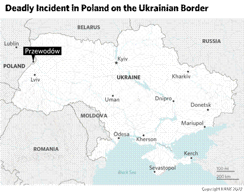 Les photos publiées semblent confirmer ce qui n’est encore qu’une hypothèse. Depuis plusieurs jours, la Russie bombarde les infrastructures civiles dans la profondeur de toute l’Ukraine (selon Kiev, une centaine de missiles et de drones auraient été lancés le 15 novembre). La défense anti-aérienne en aurait neutralisé un certain nombre mais la retombée d’un missile AA au sol est toujours possible.
