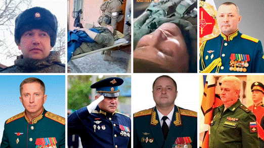 L’ampleur de ces pertes est sans précédent depuis la Seconde Guerre mondiale (en Syrie, deux ou trois généraux russes auraient trouvé la mort.) Cela a été attribué aux responsables militaires de haut rang russes qui se sont rendus en première ligne pour répondre aux « difficultés de commandement et de contrôle » et aux « performances défaillantes de la Russie sur la ligne de front ».