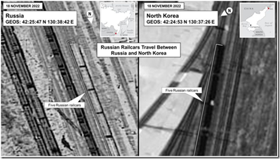 Cet endroit est le même où le renseignement américain avait détecté le 18 novembre 2022 un échange curieux de cinq wagons avec la SMP Groupe Wagner.