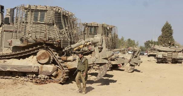 Environ 20.000 militaires israéliens seraient engagés en première ligne dans cette opération. Ils seraient répartis dans des unités mixtes de la taille d’une compagnie mécanisée renforcée armée de chars de bataille Mekava Mark 4 qui apportent leur appui-feux directs et de blindés de combat d’infanterie du plus moderne Namer à l’ancien Achzarit et même des vénérable M113…