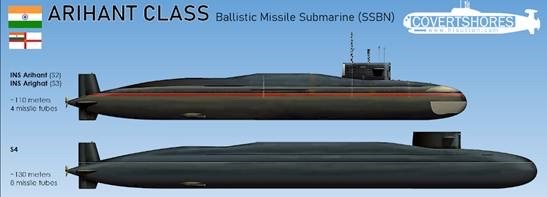À savoir qu’elle développe un programme de sous-marins lance engins à propulsion nucléaire de 6.000 tonnes de classe Arihant. Les S2 et le S3 seraient déjà opérationnels et une version améliorée de 7.000 tonnes devrait être livrée (le S3 en en 2004 et le quatrième qui n’a pas encore été nommé en 2005).