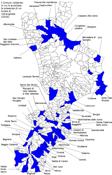 La’Ndrangheta serait actuellement composée d’environ 150 familles calabraises. Son chiffre d’affaires annuel se monterait à une cinquantaine de milliards d’euros à travers le monde.