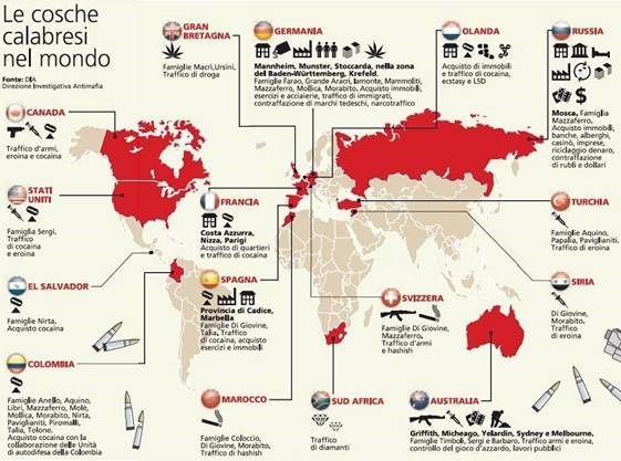Basée en Calabre, une région très pauvre située dans la pointe de la Botte italienne, la’Ndrangheta est la plus riche et la plus puissante des mafias italiennes (Cosa Nostra. Camorra, Sacra Corona Unita, Stidda).