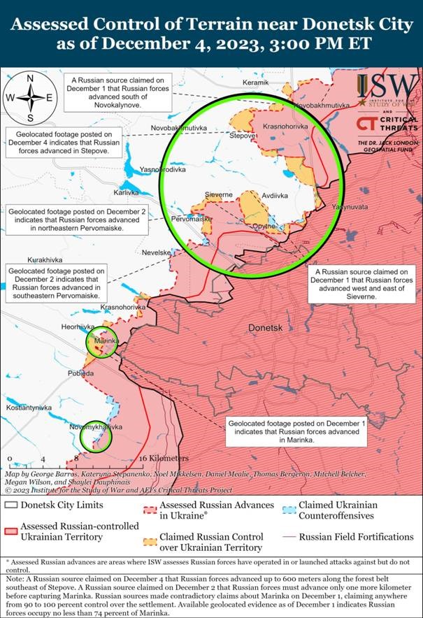 Depuis la mi-octobre, toute leur attention est concentrée sur la ville dévastée d’Avdiivka qui résiste en grande partie grâce aux fortifications mises en place par ses défenseurs ukrainiens.