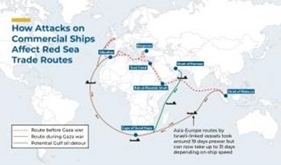 Selon des données maritimes récentes, les attaques houthies contre des navires commerciaux en mer Rouge, en particulier celles qui ont des liens avec des Israéliens, ont conduit certaines compagnies à dérouter leurs navires du canal de Suez et le point d’étranglement stratégique du détroit de Bab-el-Mandeb. Ainsi, de plus en plus de navires suivent maintenant la route beaucoup plus longue et coûteuse autour du cap de Bonne-Espérance pour atteindre l’Europe et l’Asie, augmentant ainsi leur temps de transit.
