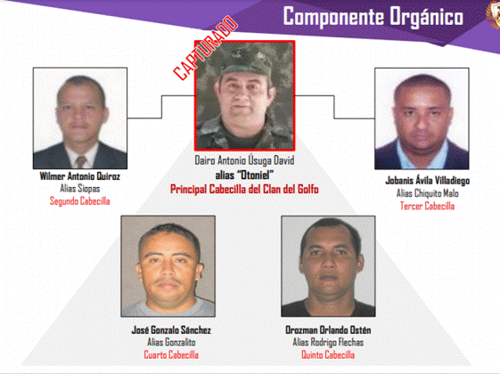 Bien que de grandes structures criminelles telles que le Clan del Golfo (voir affiche de recherche ci-après (1)) continuent d’opérer dans le pays, on assiste à un processus d’atomisation des groupes qui réduit leur pouvoir.