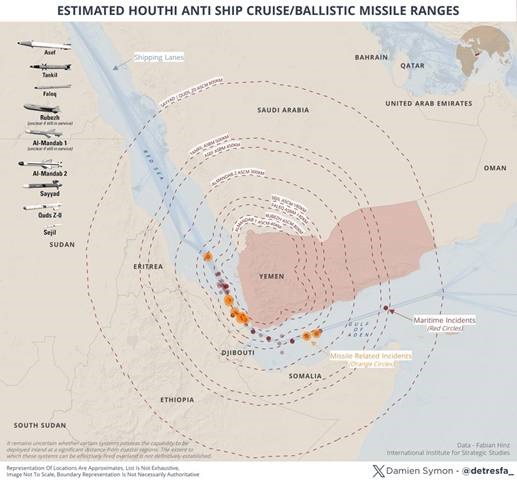 À des milliers de kilomètres plus au sud, dans et autour de la mer Rouge, il semble clair maintenant que les États-Unis tentent d’endiguer les tirs des Houthis contre les navires transitant par la mer Rouge.