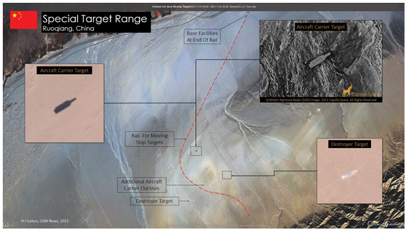 Des images satellites datées du 20 octobre ont permis de repérer dans le désert chinois de Taklamakan des répliques grandeur nature de navires de guerre américains qui pourraient être utilisées…