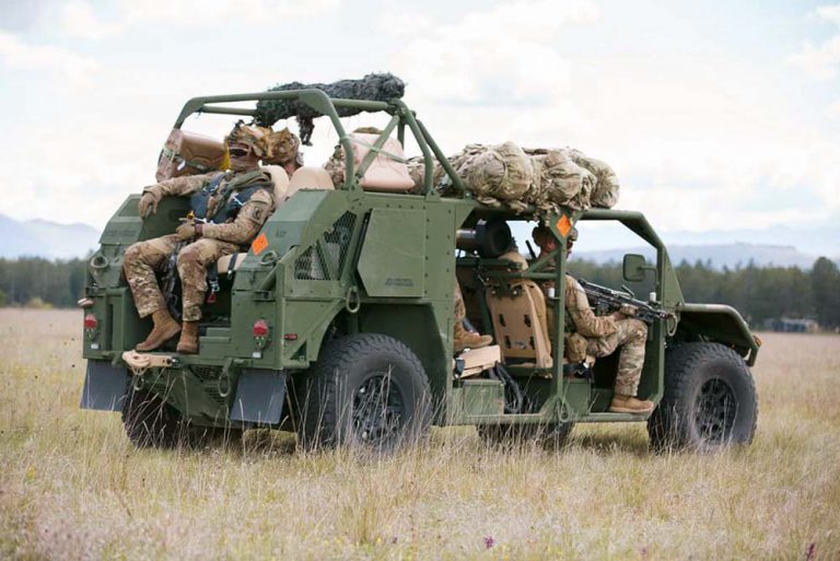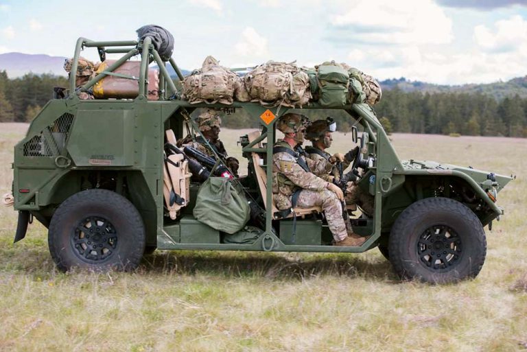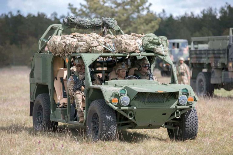 Gros plan sur le nouveau véhicule léger de l’US Army M1297 AGMV (US Army Ground Mobility Vehicle) qui, avec la version GMV, doit remplacer les fameux Humvee dans les unités légères.